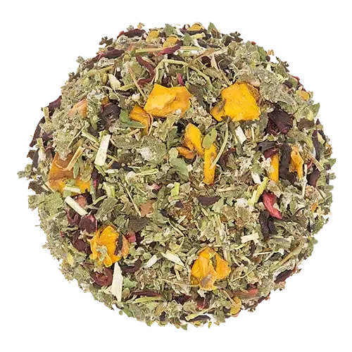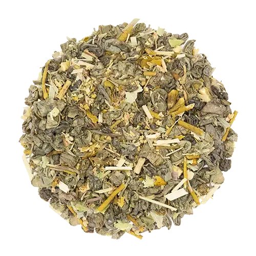 Ontdek de verkwikkende kracht van Green Blossom Thee. Deze biologische melange combineert groene thee, citroengras, vlierbloesem, lindebloesem en maretak voor een unieke, frisse smaakbeleving. Perfect voor ontspanning en vitaliteit. Proef de natuur in elke slok! Onze Green Blossom thee is biologisch ingekocht, 100% natuurlijk en zonder toevoegingen.